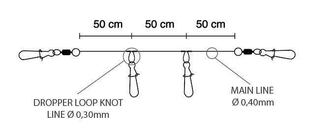 Su línea madre de 0,40 mm y brazos de 0,30 mm ofrecen una excelente resistencia y una presentación sutil en el agua, ideal para atraer cefalópodos con eficacia incluso en condiciones exigentes.