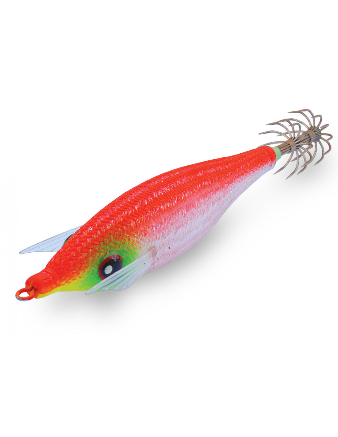 Su combinación de colores rojo, naranja, rosa, amarillo y verde ofrece una versatilidad excepcional para adaptarse a distintas condiciones de luz, turbidez y comportamiento del cefalópodo. El tamaño 2.5 lo convierte en una opción ideal para pesca ligera, días difíciles o cuando los animales se muestran más selectivos y cautelosos.