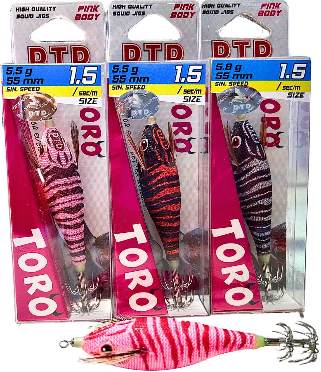 Señuelo DTD Toro, jibionera DTD, señuelo para calamar, jibionera eging, señuelo de pesca DTD, DTD Toro 2.5, eging profesional, pesca de sepia, pesca de calamar desde costa, señuelo equilibrado para cefalópodos.